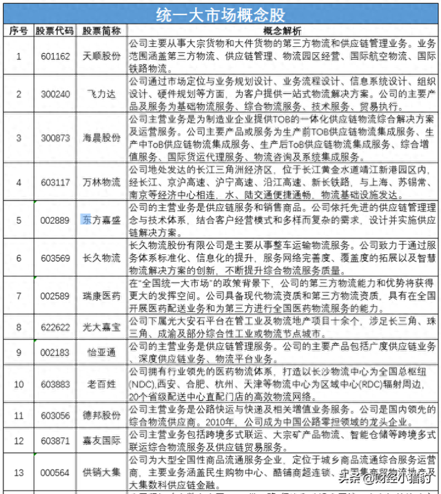 统一大市场概念股具有较高的投资价值,但投资者需综合考虑政策、行业发展趋势以及潜在风险,合理配置投资组合。